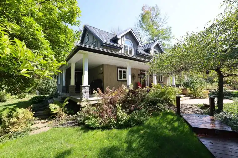 Looking for Unique & Beautiful Country Living? Here youre located on the outskirts of Owen Sound, on a magical 4.4-acre property. Less than a 5-minute drive into Owen Sounds east side, just 5 minutes to the Leith Beach, 8 minutes to the Hibou Conservation Area, and 40 minutes from your driveway to being on the hill at Blue Mountain. The extremely private setting features a stunning lot with extensive perennial flower gardens, a fenced vegetable garden, horseshoe pits, beautiful mature trees & shrubs, a fully functioning chicken coop, extensive walking trails & so much more! The gorgeous natural setting offers various wildlife sightings throughout the seasons. Lots of open space for kids & dogs alike to run, play & enjoy. The expansive lot offers an abundance of room for kids to explore, not to mention great spots for tree forts and camping. Coming inside youll fall in love with the authentic 100% Custom Timber Frame construction, high quality workmanship, thoughtful finishes and attention to detail. The beautiful Cherry Custom kitchen features all brand-new stainless-steel appliances (with extended warranties), centre island & granite counters. Many recent updates including: main floor paint, new top of the line water filtration system, updated light fixtures, switches & outlets, 2021 new woodstove, 2nd level bathroom reno 2024, laundry reno 2024, on demand hot water 2024, new air handler, many replaced windows, new exterior doors, new wood flooring in tv room 2024, new glass railing system on deck, new brickwork on porch posts & behind woodstove, new stairway exit from basement (for easy access) & much more!