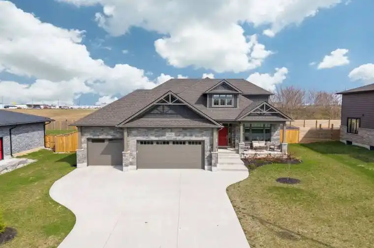 Welcome to one of Exeter’s most sought-after addresses on Hazelton Lane where luxury meets functionality in this meticulously crafted home. Boasting over 2,800 sq ft of beautifully finished living space, this property is ideal for families, multigenerational living, or anyone seeking a spacious, high-end lifestyle.The standout feature of this home is the oversized 3-car garage, complete with a rear bay door for backyard access and direct stairs leading into the finished basement offering the potential for a separate in-law suite or private space for extended family.Inside, you are greeted by a bright main-floor office and a spacious primary suite with a walk-in closet and private ensuite, creating the perfect retreat. The open-concept kitchen, living, and dining areas flow effortlessly, making entertaining a breeze. Convenient main floor laundry adds to the homes practical design.Upstairs, two generously sized bedrooms and a full 4-piece bathroom provide plenty of space for kids or guests. The fully finished basement includes an additional bedroom, a stylish rec room with an electric fireplace, and a modern 4-piece bath. Ideal for movie nights, game days, or extended stays.Step outside to enjoy the large, fully fenced backyard with ample room to relax or play. Located just steps from the scenic Morrison Dam walking trails, this home offers the best of small-town charm and outdoor adventure.Dont miss your chance to own this rare gem in one of Exeter’s most prestigious neighbourhoods.