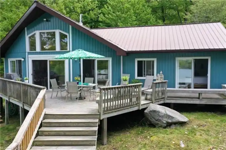 Looking for Peace and Tranquility? Welcome to Downie Island! Centrally located in the 1000 Islands. Truly amazing deep, clean waterfront perfect for swimming and enjoying the beautiful sunsets. Including a large boat-port able to accommodate multiple boats and swim off or feed the passing by swans. This cottage offers 3 bedrooms 1 loft area and separate sleeping bunkie, 2 full bathrooms, stunning hardwood vaulted ceilings, large panoramic windows to enjoy the breathtaking waterfront views. Step out the patio doors to bask and unwind in the sunlight on the expansive wrap-around deck, open concept kitchen with all the modern conveniences. Just bring your overnight bag this cottage is turn key and ready for you to enjoy the dog days of summer. 10 minute boat ride away from the Glen House Resort/Smuggler’s Glen Golf Course.