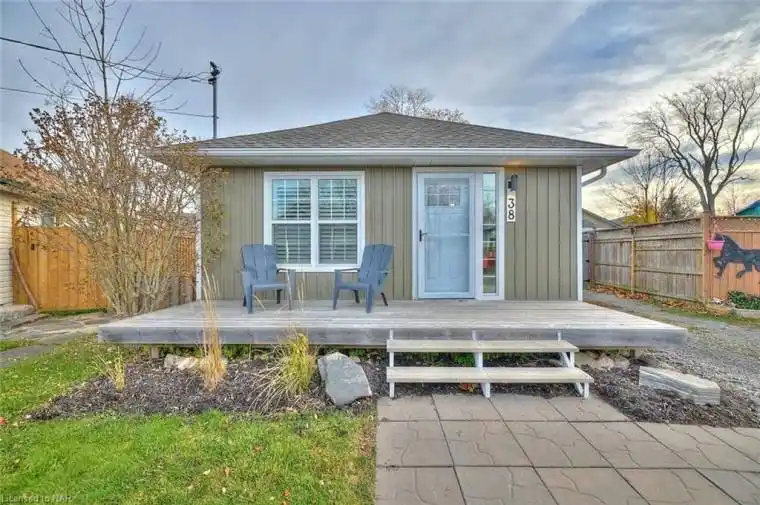 Quick closing is now available!! Welcome to 38 Lincoln Rd. East, in the heart of the Village of Crystal Beach. Completely renovated in 2019, this 2-bedroom bungalow is a turnkey property with no tasks left on your to-do list, simply pack your beach towel! Step into the open-concept kitchen/living area adorned with quartz countertops, a breakfast bar, and ample cabinetry, complemented by stainless steel appliances. The home boasts premium features such as custom-built cabinetry in the bedroom closets, a barn door, pot lighting, upgraded trim, custom vinyl California shutters and distinctive interior doors. The structural and mechanical aspects of the house are equally impressive, with exterior walls expanded for additional insulation, a high efficiency gas forced air furnace, central air, and upgraded wiring and plumbing. The exterior features updated windows, doors, siding, soffit, fascia, eaves, and roof, a 21’x6′ front deck, and a 16’x8′ covered rear patio. The property is fully fenced in and includes a newer shed, ideal for storage. With the covered patio and gas BBQ line this home is great for entertaining. Nestled in the vibrant circles of Crystal Beach, this house offers a low-maintenance, charming retreat within walking distance of new shops, restaurants, and the Bay Beach Park on Lake Erie’s sandy shores. Conveniently located near the historic Village of Ridgeway, the QEW, Fort Erie, and the Peace Bridge to the USA, this property is a delightful and cozy escape. If this sounds like the lifestyle for you, perhaps it’s time to (re)Discover Crystal Beach!