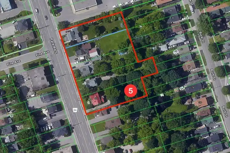 An exceptional opportunity to acquire a fully assembled site of 5 residential lots located directly on an arterial road abutting a commercial plaza, designated as “High Density II Residential” in Oshawa’s Official Plan, permitting the city’s second-highest density. Currently zoned R5 / R7, the site allows for many uses, including apartment development, but the zoning significantly underutilizes the full potential of the official plan, making this an ideal candidate for rezoning and intensification. What sets this offering apart is the turnkey nature of the assembly – no risk of delayed acquisitions or holdout owners. All five sellers are aligned and committed to selling simultaneously, eliminating typical land assembly headaches and carrying risks. Situated just 1 KM from downtown Oshawa and steps to transit, this location offers unmatched urban convenience and growth potential. With Oshawa ranked among the fastest municipalities for development approvals, this site is poised for rapid progression. Sellers are open to vendor take-back (VTB) financing and may offer leaseback options during the entitlement phase, providing flexible terms to streamline your development timeline. Perfect for builders, developers, and forward-thinking investors – capitalize on Oshawa’s intensifying growth and unlock the potential of this rare, high-density development parcel.