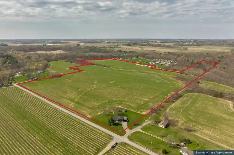 A rare opportunity to own prime real estate on the Lincoln Bench! Privacy & peaceful living are available at this picturesque 56 acre property. Located on a dead end road with views of farmers fields everywhere you look. The property includes 38 workable acres & 13.5 acres of bush. 3 road frontages (Fifteenth Street, Seventeenth Street and Bigger Avenue). Well maintained 3 bedroom side split with a partially finished basement. Foyer has ceramic tile flooring and a double entry way closet. Kitchen includes a ceramic tile backsplash and ceiling fan. The formal dining room features laminate flooring and a patio door that leads to the rear deck overlooking the fields. Living room has a large north facing window and laminate flooring. The 4-piece bathroom offers a bath fitter tub/shower. Cozy main floor family room brings the country feel to life with a wood stove, laminate flooring and a double closet. Conveniently located mud room off the carport with two closets. Large sunroom off the back of the carport has new flooring (2022) and offers another space for you to enjoy that country lifestyle. The basement offers a rec room with wood wainscoting and pot lights. Garden shed in rear yard. Tar and gravel roof over the car port; asphalt shingles over the rest of the home (replaced in 2017). All windows were replaced within the past 5 years. Bell Expressvu TV available at the house, not currently in use. NWIC is current internet provider. Land rented for $70/acre for 2025.