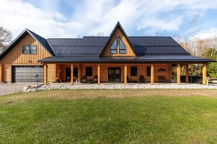 The ‘Last Resort’ is a perfect blend of modern living in a gorgeous home, with over 675′ of riverfront, wooded trails and privacy on 6.37 acres in the beautiful town of Southampton. Crafted in 2017 this 9″ Eastern White Cedar log home boasts over 2400 sq.ft. of premium living space with a casual elegance that only a log home offers! The great room is flooded with natural light from oversized patio doors and windows that extend to the peak of the cathedral ceiling. The Scandinavian wood burner stove is a functional as it is pretty! The large centre island in the kitchen will attract family and friends while the wormy maple kitchen with huge pantry cupboard, floating shelves and stainless appliances will intrigue the most discerning chef! The main floor office could be a bedroom with access to the covered patio and hot tub through the patio doors. Full bath with walk-in shower! Large main floor laundry with wall to wall closets! The second storey offers a family room loft that overlooks the great room and separates the primary suite with a private balcony to watch the stars, ensuite and walk-in closet from the 2nd and 3rd bedrooms with a full bath and sitting area perfect for yoga, exercise or to cozy up with a book. The heated oversized double garage has an overhead rear door, stainless steel fish cleaning station with sink, perfect for preparing the catch of the day from the river! In-floor radiant heat throughout the polished concrete floor is as economical as it is beautiful! Covered patio, hot tub, fire pit and lots of green space for outdoor fun! Stroll to the river’s edge with your own private dock and endless trails. There’s another fire pit by the river where you can look west and enjoy the sunsets and watch the boats and fishermen! The grounds and gardens feel like you are in a country paradise however you are only 5 blocks to downtown! Fenced yard. 2 garden sheds with wood storage. Riverfront, privacy, wooded trails and a spectacular home!