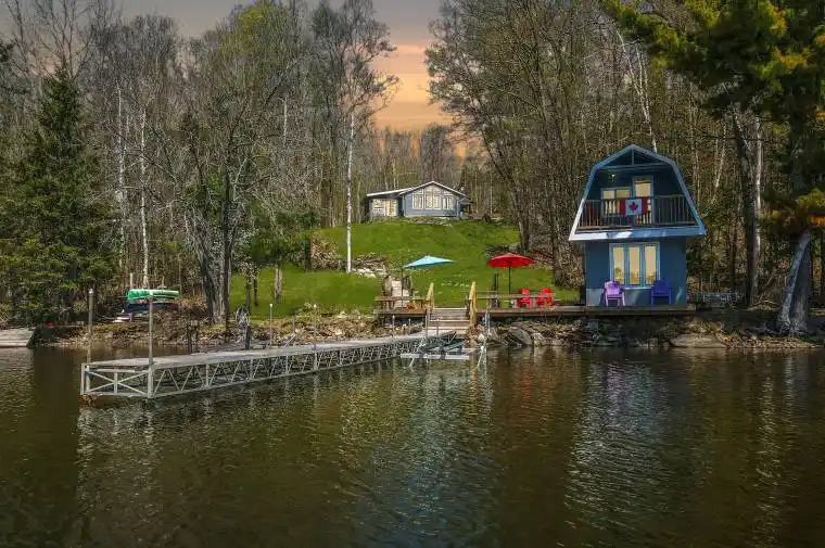 Welcome to Your Dream Lakefront Retreat! Perfectly set up for families and unforgettable childhood memories, this year-round cottage sits on a double lot with 190 feet of pristine shoreline and 1.89 acres of privacy and natural beauty. Located on the shores of Mountain Lake, part of a sought-after 2-lake chain, this property offers the perfect blend of relaxation, recreation, and convenience. Inside, the bright and open-concept living/dining/kitchen area with vaulted ceilings offers panoramic views of the lake. With three bedrooms, two bathrooms, a laundry area, and a cozy entryway, theres room for the whole crew. The primary bedroom is currently set up with three sets of bunk beds, maximizing sleeping space but could be reverted back to a primary oasis. Outside, you’ll find everything you need for lakeside fun and relaxation. A meandering path leads to the waterfront that is ideal for all ages, with a gradual, sandy entry thats ideal for young swimmers, plus 10 feet of depth off the end of the dock for diving and boating – truly the best of both worlds! A wood-fired hot tub sits right at the water’s edge perfect for soaking under the stars. The outdoor space also features an oversized entertaining deck and plenty of room for games, gatherings, and waterfront fun.The charming 398 sq. ft. boathouse includes a main-level hangout space, a loft for sleeping, and even a balcony to catch warm summer breezes. Additional features: Large toy garage & two storage sheds, Heat pump, A/C, propane furnace, 200 amp electrical service, Drilled well & 8000W generator & Ample parking for family and guests. Whether you’re looking for a peaceful family escape, a place to host multi-generational get-togethers, or a turnkey investment, this lakefront gem is ready for you to make lifelong memories. Located just a 5 minute drive to the vibrant town of Minden for all your essentials & many amenities and within easy reach of the GTA!