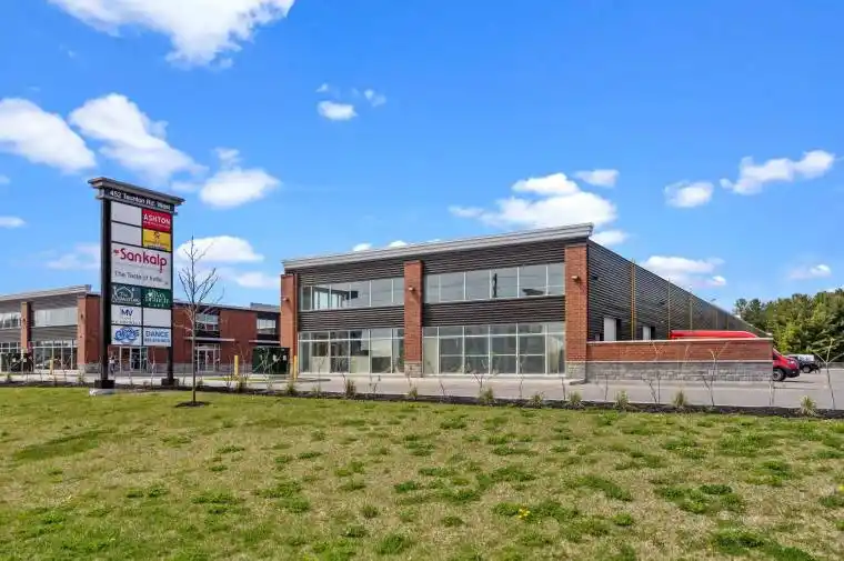 Finished Commercial Unit in North Oshawa Gardens Prime Taunton Road Exposure. Elevate your business presence with this beautifully designed commercial space located in Durham Regions largest commercial/industrial development hub. Positioned directly on high-traffic Taunton Road, this property benefits from over 30,000 vehicles passing daily, ensuring maximum exposure and visibility. Northwood Business Park, this modern, turnkey unit is ideal for businesses seeking a professional, polished environment with high-end finishes and flexible functionality. Fully finished office space including a stylish boardroom, private office, built-in front desk, and inviting reception area. Luxurious universal washroom featuring premium finishes. 9-ft custom interior doors and 20-ft ceilings create an open, upscale atmosphere. Statement lighting and two-storey front windows provide abundant natural light. Large industrial storage area with 16-ft high shelving, a utility sink, washer/dryer hookup, and closet space. Storage platforms above both front offices for added functionality. 10-ft roll-up garage door at the rear and 10-ft front double doors for easy access. Upgraded HVAC system with rooftop A/C and furnace (owned), electrical (200-amp), natural gas, data lines, and a hardwired server location. Keyless front entry with key fobs and rear door mechanical coded locks. Rough-in for future 600 sq ft mezzanine (permits required). Additional Features:Over 200 shared parking spaces on site for employee and customer convenience. Prominent signage opportunities above the unit and on a high-visibility pylon sign on Taunton Road. Zoning allows for a wide variety of uses including restaurants, professional offices, industrial trades, gyms, studios, or showrooms. Commercial development fees paid on 925 sq ft (valued at $44.55/sq ft), converting from original industrial zoning. Over $250,000 invested in renovations and upgrades, move-in ready for a range of business types.