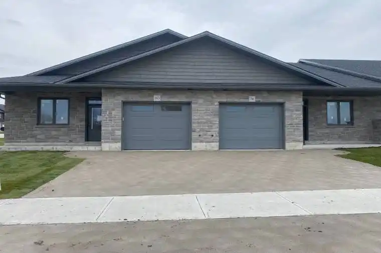 Discover the epitome of serene living with these six exquisite freehold townhomes nestled in the prestigious Golf Sands Subdivision. Embrace the luxury of NO CONDO FEES and relish in the allure of being carefree. Situated adjacent to the picturesque Kincardine Golf and Country Club and mere steps away from a pristine sand beach. Each townhome offers unparalleled elegance. Indulge in the convenience of single-floor living with over 1345 square feet of meticulously crafted space. Experience the seamless flow of open-concept living and dining areas, complemented by a spacious kitchen featuring a large pantry and 9-foot ceilings. Unwind in two generously sized bedrooms and revel in the opulence of two full bathrooms, both boasting quartz counter tops, the guest offering an acrylic tub and shower, and the ensuite featuring a custom tiled shower. Enjoy the convenience of an attached garage, complete with an automatic opener, and a meticulously landscaped front yard adorned with lush shrubs. Relax on the charming front porch or retreat to the covered rear deck, perfect for enjoying tranquil moments outdoors. Experience ultimate comfort with in-floor heating and ductless air conditioning, ensuring year-round comfort. With thoughtful features such as a concrete driveway, topsoil, sod, and designer Permacon Stone exterior finishing, each townhome exudes timeless elegance and quality craftsmanship. Rest assured with the peace of mind provided by a full Tarion warranty. Don’t miss your opportunity to secure your dream home today. No need for up grades ,heat pump, trusscore on garage walls, plus much more all included. $639,700