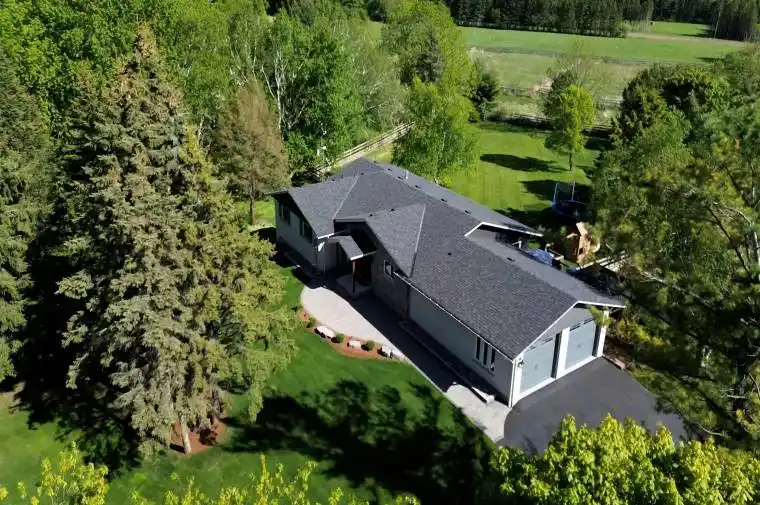 Experience the charm of this fully customized raised bungalow country estate, thoughtfully designed for luxurious and comfortable living. Featuring 3+2 bedrooms and 3 full bathrooms, this home offers an open-concept main floor with beautiful hickory flooring throughout. The gourmet kitchen boasts built-in luxury appliances, granite countertops, and a large pantry. The family and dining rooms open onto an extra-large deck that overlooks peaceful natural surroundings, creating the perfect space for relaxing and entertaining. Step outside to enjoy a fully landscaped property set on over 1 acre of serene land, complete with an extra-large fire pit, a spacious shed, and ample play area in the backyard ideal for family fun and outdoor gatherings. The massive two-car garage is fully epoxied and insulated, complemented by an attached heated third garage with a workshop, available for year-round use perfect for car enthusiasts or craftsmen seeking dedicated workspace. Additional upgrades include a state-of-the-art water system, high-efficiency windows, and enhanced insulation, ensuring comfort and energy efficiency year-round. The lower level features a private two-bedroom in-law suite with its own kitchen, laundry, and bathroom, offering excellent flexibility for extended family or rental income. Located just 5 minutes from the town of Brooklin, this exceptional country estate combines tranquil country living with convenient access to local amenities, making it the perfect family retreat or hobbyists haven.