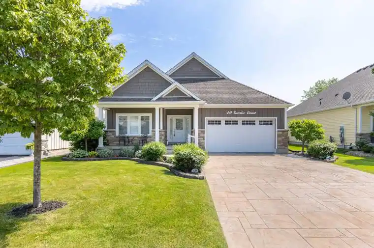 Experience sophisticated living in Ridgeway By The Lake, an upscale adult lifestyle community steps from the serene shores of Lake Erie. Nestled in the historic town of Ridgeway, the property is also conveniently located near the beautiful white sand beaches of Crystal Beach. This exquisite Port model bungalow boasts 2,758 sq ft of beautifully designed space, featuring three bedrooms and three full bathrooms. The inviting open-concept layout is enhanced by high ceilings, gleaming hardwood floors, and an abundance of natural light. The kitchen is both stylish and functional, outfitted with granite countertops and heated floors, seamlessly flowing into the dining and living areas where a gas fireplace adds warmth and character. The primary bedroom impresses with a walk-in closet and ensuite complete with heated floors, while the main floor laundry offers everyday convenience. A partially finished basement extends the living space with a large family room ideal for relaxation or entertainment. Outside, a spacious back deck with a pergola creates the perfect setting for gatherings. A stamped cement driveway adds both curb appeal and durability, while an irrigation system ensures the landscape remains lush and well-maintained. Residents can also elevate their lifestyle with an optional Algonquin Club membership, granting exclusive access to a 9,000 sq ft clubhouse featuring a state-of-the-art fitness center, sauna, saltwater pool, games room, billiards, and dynamic community events. This is a rare opportunity to indulge in elegance, comfort, and connection in a truly exceptional setting.