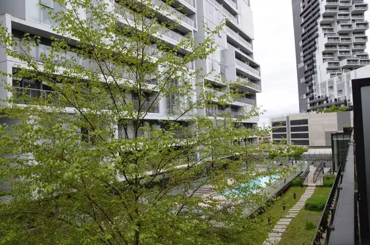 Jr. 1 Bedroom +study unit with 9′ concrete exposed ceiling, floor to ceiling windows/glass door, engineered hardwood floor, modern designer kitchen features s/s appliances and quartz counter in award winning and fast growing river city community. 23 Acres of public parks including 19 acres Don River Park and Trails. Walk to distillery district, corktown, St. Lawrence Market and many Amenities . Easy access to HWY, Minutes to TTC rides to downtown core.