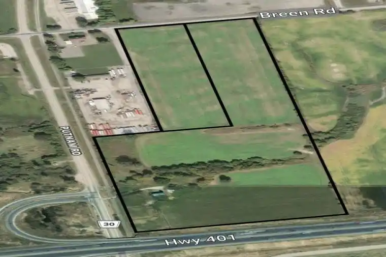 34.86 Acres of Industrial Land Featuring Over 900 Feet of Direct Frontage Along Highway 401 and a Railway Line Running Parallel to the Property. Ideally Located Between London and Ingersoll, the Site Offers Exceptional Visibility and Immediate Access to the 401. Currently Comprised of 2 Parcels, With Approval Pending for a 4-Parcel Configuration. Zoned M1, the Property Allows for a Broad Range of Industrial Uses Including but Not Limited to Transportation Terminal, Warehouse, Public Self-Storage, Construction Equipment/Material, etc.