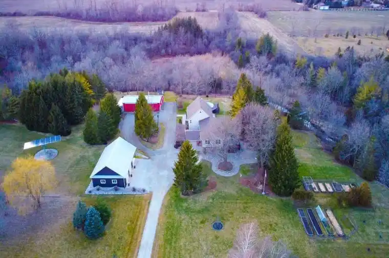 For more info on this property, please click the Brochure button. A well-maintained hobby farm, 36.51 acres. A raised ranch house, 4 + 2 bedrooms, 3 bathrooms, a fully finished basement, attached garage, and detached 3-car garage. The driveshed has an insulated and heated workshop area. Primary bedroom includes a gas fireplace, an ensuite with separate water closet, and large dressing room/walk-in closet. The renovated open concept kitchen (with island)/dining/living area has quartz countertops; hardwood/tile floors throughout. There is a second gas fireplace in the family room. In-floor heating in basement and ensuite. Vinyl windows, new shingles (2020), ground-source heating/AC system, ERV air exchanger, municipal water, septic system, high speed internet. There are 3 cedar decks; one off the dining room with a large gazebo, one off the primary bedroom and one by the 27′ above-ground pool. There is also a 10-kW solar panel system that generates ~$12,000/year income.