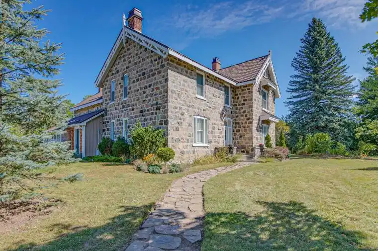 This Victorian home built in 1872 is historically known as Strathaven or The Wattie House. Located on a high/dry parcel of land totaling 6.97acres in Springwater Township. Very much a captivating home as it exudes in-depth history, endless charm and meticulous craftsmanship throughout. Any maintenance done to this century home has been done to preserve and not compromise the integrity of the home. The entrance is a grand spectacle on its own that welcomes you to the warmth and majestic beauty that this home offers. Boasting 3928sq feet of living space on the two upper floors, including 6 large bedrooms and 2 full new baths (one with linen closet). A few important upgrades to mention are: new septic system (2011), newer gas furnace and A/C (2011), updated wiring/panel, new windows (some are historical), new flooring (refinished original hardwood and new luxurious carpet 2024), many unique/timeless light fixtures ($$$) & custom drapery just to name a few. You will be absolutely wowed by the top to bottom custom kitchen which truly is a remarkable place for family/social gatherings. Other notable features are the original plaster archways, crown molding, wainscoting, towering baseboards and historical grand fireplace. The current owners have taken exceptional care of this home and have made an abundance of upgrades, while preserving the home’s natural character. The chimneys have been rebuilt and topped with custom copper caps to match the copper valances over the front two windows. There is a detached garage and additional older barn on the property, which you can use your imagination with. This home is for someone wanting space and privacy in a parklike setting, yet be located within 10min to Barrie, Snow Valley Ski Resort, Vespra Hills Golf Club, multi recreational trails and so much more. An absolute historic gem to view. True timeless elegance in this beauty. Don’t miss your chance to own some history in Springwater Township.