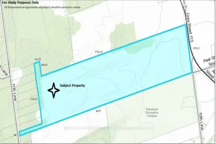 89+/- Acres of Prime Land | Blue Mountains. A rare opportunity to own an expansive parcel just minutes from Lora Bay, Thornbury, and the Village at Blue Mountain. This approximately 89-acre property features beautiful natural surroundings and offers incredible potential whether you’re envisioning future development, a recreational retreat, or a private estate (subject to approvals).Ideally situated in one of Southern Georgian Bays most desirable areas, enjoy privacy and tranquility while still being close to golf, skiing, trails, and the waters of Georgian Bay. Buyer to perform their own due diligence regarding zoning, permitted uses, and development potential.