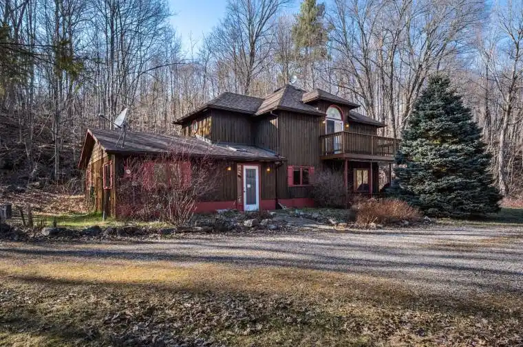 Welcome to 13 Pheasant Lane A Waterfront Retreat situated on 4+ acres on Kingsford Lake. Experience serene lakeside living in this stunning 3-bedroom home, perfectly positioned on the shores of Kingsford Lake with breathtaking, long-range views of Frontenac Provincial Park, and just minutes by boat to Birch Lake. This thoughtfully designed residence features 3 bedrooms (2 on the main floor and a loft bedroom), radiant in-floor heating on the main level, a sun-drenched 3 season sunroom ideal for morning coffee or evening unwinding, and a spacious master suite that spans the entire second floor, offering privacy and picturesque views, a 5 piece ensuite with jacuzzi tub and separate shower. The double car garage provides ample storage for your vehicles and recreational gear, and guests can retreat to their own bunkie down by the water. Whether you’re looking for a year-round residence or a tranquil weekend escape, 13 Pheasant Lane offers the perfect blend of comfort, style, and natural beauty, only 40 minutes from Kingston and less than 90 minutes from Ottawa.