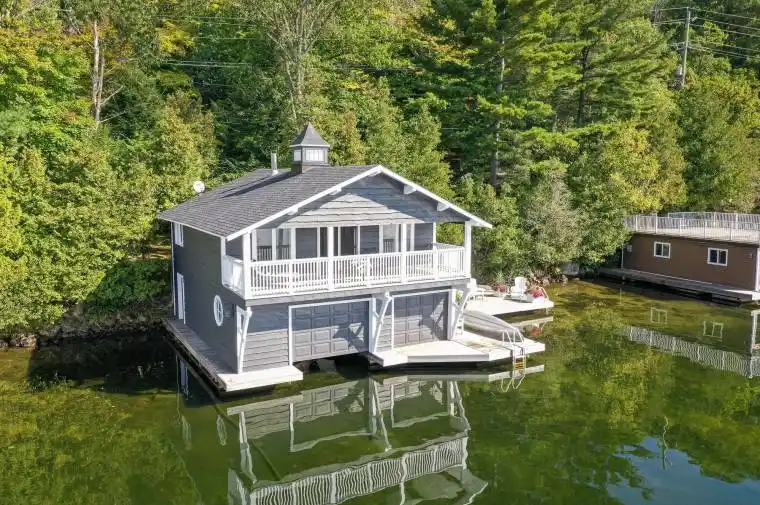** LOCATION – LOCATION – LOCATION ** WALKING DISTANCE TO PORT SANDFIELD – AND JUST A SHORT DRIVE TO THE LAKE JOE CLUB – CLOSE TO SHOPPING & AMENITIES IN PORT CARLING, MINETT & ROSSEAU ** IT SIMPLY DOES NOT GET ANY MORE MUSKOKA THAN THIS ** Rare Lake Joseph offering in a prime Port Sandfield locale – this Boathouse Cottage is nestled along the shore with a highly desired south-west exposure, plus there is a separate parcel of land with 2-car parking area opening up your expansion possibilities – call to inquire about plans for 2-car garage with coach house! You will surely fall in love with this beautifully appointed 2-storey boathouse living space, and enjoy the most exceptional views from the covered balcony running the entire width of the boathouse. There is even a finished useable loft area for kids playroom &/or additional sleeping. Entertainment sized decking at waters edge with plenty of extra room for canoes, kayaks, paddle boards. Hard packed sandy shallow entry and deeper water off the docks. Step inside the boathouse to the interior rec room, complete with TV, along with 1 large boat slip & plenty of storage room too. Level plateau of land behind the boathouse is extensive and ideal for outdoor activities & firepit. Dont miss out on this incredible opportunity! Call today for further details, and to arrange your appointment to view.