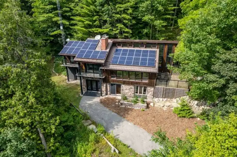 Welcome to a hidden gem in Rural Clarington. Approx. 40 acres of breathtaking privacy nestled into a wooded hillside, overlooking two spring-fed ponds. This one-of-a-kind retreat offers the peace of country living and the beauty of nature at every turn. Designed to embrace its surroundings, the main living space features an updated kitchen with butternut cabinetry, granite counters, tile backsplash, marmoleum flooring, stainless steel appliances, and an adjacent walk-in pantry. The dining room boasts a soaring, cathedral ceiling and overlooks a sunken living room with a wood-burning fireplace and walk-out to a sprawling deck, perfect for taking in the tranquil views. A 4-pc bathroom offers spa-like comfort with a sunken soaker tub and walk-in shower. Both bedrooms on this level feature their own private balcony overlooking the pond. The lower level, with its own separate entrance and driveway, is ideal for guests, in-laws, or extended family. It includes a bedroom with a large picture window, a family room with exposed beams, walk-out to the yard, and an electric fireplace with brick surround. A 2-pc bath, laundry area, and a peaceful wellness space featuring a dry sauna, Japanese soaking tub, and shower complete the lower level. Three driveways offer flexible access, two to the home, and a third leading to an impressive approx. 60’x40′ detached garage/workshop fed by its own drilled well has a wet bar and lounge area. Outside, two spring-fed ponds with private docks invite you to swim, paddle, or simply soak in the serenity. Surrounded by rolling hills, meadows, and mature trees, this is more than a home it’s a private retreat where peace and possibility live in perfect balance.