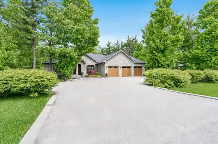 Top 5 Reasons You Will Love This Home: 1) Located in the sought-after neighbourhood of Minesing, this gorgeous custom bungalow sits on a premium 123’x196′ lot surrounded by nature and executive homes 2) This stunning home features include vaulted and coffered ceilings, rich hardwood floors, 8′ doors, pot lights, built-in speakers (inside and out), and a stunning open-concept living space centered around a sleek Napoleon linear fireplace and gorgeous windows overlooking the treed property 3) The chefs kitchen boasts paneled cabinetry, granite counters, a massive centre island, a wine fridge, and top-tier Thermador and Wolf appliances, including a gourmet griddle, perfect for everyday living and entertaining 4) The main level offers three bedrooms, each with a large closet, and a spa-like primary suite with a freestanding Acryline spa tub and glass shower, while the finished basement adds two bedrooms, a 3-piece bathroom, gym area, entertainment bar with a movable island, pool table, and table tennis 5) Additional highlights include an insulated 3-car garage with an additional 200-amp outlet, a finished driveway, a private backyard with an interlock patio and inground sprinklers, and Fibre optic internet available at the lot. 2,355 above grade sq.ft. plus a finished basement.