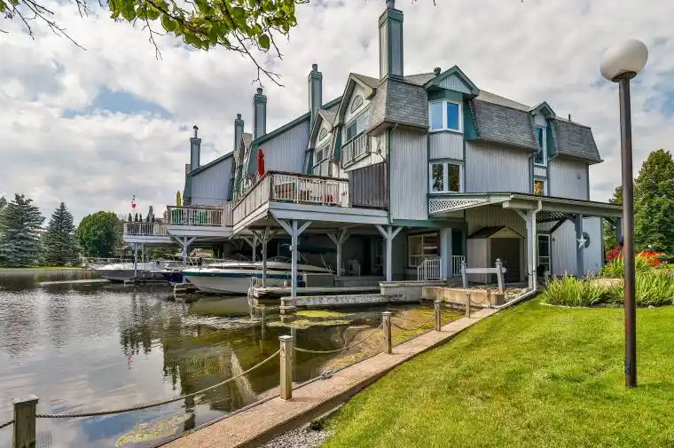 Welcome To Your Dream Waterfront Oasis In Lagoon City, The Gateway To Muskoka And The Trent-Severn Waterway. This Sun-Filled Corner Townhome Boasts A Prime Location With Direct Access To Lake Simcoe, Featuring A Private Covered Boat Slip Ideal For A Large Watercraft Or Multiple Seadoos And Additional Shore wall Mooring To Fully Support Your Nautical Lifestyle. Beautifully Renovated And Thoughtfully Designed, This 3-Bedroom + Den Home Offers Flexible Living Options. The Main Floor Den Easily Converts To A 4th Bedroom, Family Room, Or Home Office. Enjoy Entertaining On The Expansive 240 Sq Ft Deck With Panoramic Canal Views, Or Relax In The Primary Suite Overlooking The Water – Your Own Serene Personal Retreat. Inside, The Bright Living And Dining Areas Feature Large Windows, A Custom Stone Fireplace Mantle, And Picturesque Garden And Water Views. The Versatile Main Floor Also Lends Itself Perfectly To Guest Quarters, An In-Law Suite, Or A Leisure Space. The Home Is Equipped With Upgraded Mechanical And Electrical Systems For Optimal Comfort And Energy Efficiency. Additional Features Include: New Laminate Flooring & Modern Baseboards, New Bathroom Marble Flooring, Custom Marble Ensuite Shower With Glass Doors & Double-Sink Vanity, New Kitchen Counters, Backsplash, Double-Sink, Faucets & Shut-Offs, Wood Staircase, Spacious Laundry Room With Cabinets, Stainless Steel Sink, And Washer/Dryer Pedestals. Lagoon City Offers A Vibrant Year-Round Lifestyle, With Amenities Including A Racquet Club, Tennis & Pickleball Courts, Two Private Sandy Beaches, 18km Of Canals, A Marina & Yacht Club, Plus Winter Skating And Hockey. Enjoy Nearby Golf Courses, Scenic Trails, And Casino Rama, All Just 90 Minutes From The GTA. Maintenance Includes Lawn Care, Snow Removal, Roof, Driveway, Windows And Doors. Offering True Care-Free Living In A Spectacular Waterfront Setting. Your Waterfront Dream Home Awaits. **Offering Seller Take Back Mortgage 0.99% For 2 Years OAC with 25% Down Payment**