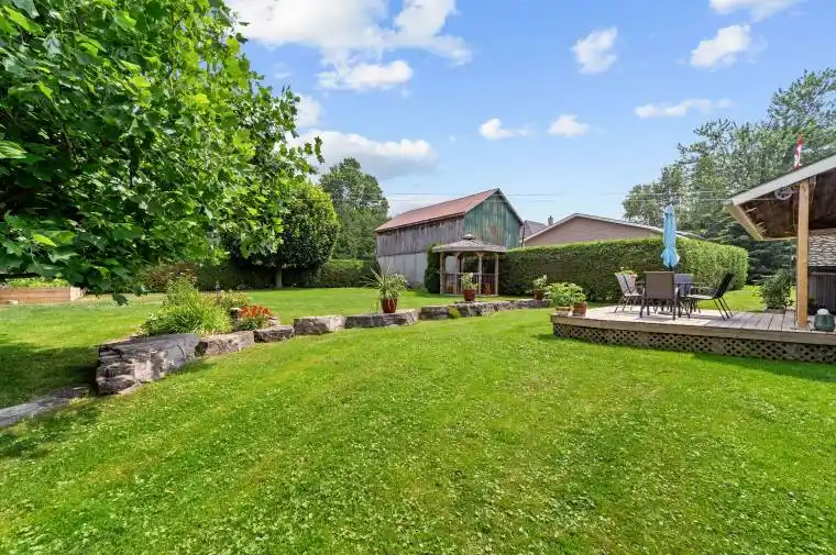 Looking for a mechanics shop with residence? Searching for an affordable home in a quaint village close to St. Mary’s, Stratford, London and minutes from Exeter. SEE VIDEO. Consider this opportunity on main street Kirkton: large, 3-vehicle shop with working hoist, insulated, heated (wood burning stove), metal roof, newer garage doors, access to shop basement, 200amp service, and roughed-in 2pc washroom (previously used as 2pc). The home features WETT certified Elmira Stove, newer propane furnace (3yr), newer AC (2yrs), newer shingles (4yr), updated galley kitchen with newer appliances, 3 bedrooms on second floor including updated 2nd floor primary with larger closet (closet was previously a 2pc bathroom). Updated 4pc bathroom (2024). Main residence has basement separate from shop, with sump pump, water softener, UV water filtration, hot water tank owned. Wrap around covered porch with hot tub. Hot tub is included. Lovely, landscaped lush grounds with large raised vegetable gardens, gazebo, shed on lot size; .3 acre MPAC/0.298ac Geowarehouse. Property was previously gas station with residence. All components of gas station / gas pumps/fuel tanks have been removed in accordance with Ministry of the Environment with documentation. Zoned for mechanics commercial business with residence. Extremely affordable: well water, septic, low property tax (approx $1,200. 2024), hot water tank owned (no rental fee), use wood stove heat if desired, or use propane furnace. Sellers say what they’ll miss most when they sell is the sense of community where neighbours still knock on your door just to say hello. If you’re looking for space, charm, and the kind of garage that serves you well, then this is the one you’ve been waiting for. See video; welcome home.