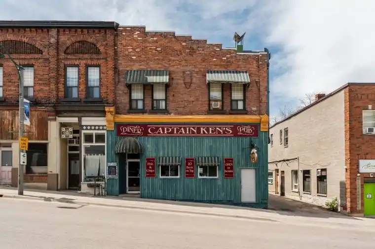 A rare chance to own a versatile, income-generating property in the heart of Penetanguishene! Home to Captain Ken’s Diner & Pub, a beloved local landmark operating since 1976. The main floor features a fully equipped, turnkey restaurant space, known for its high visibility, steady foot traffic, welcoming atmosphere, and loyal customer base. Above the restaurant, the second floor offers two large, 3-bedroom, 1-bath apartments, both currently tenanted providing reliable rental income. Highlighted by a deck/patio off the back unit. With prime Main Street frontage, on-site parking (5-6 cars), and flexible DW zoning, this property is ideal for restaurateurs, investors, or entrepreneurs. Whether you continue its long-standing tradition or bring your own vision, this is a rare chance to own a piece of Penetanguishene’s history. Don’t miss this incredible opportunity!