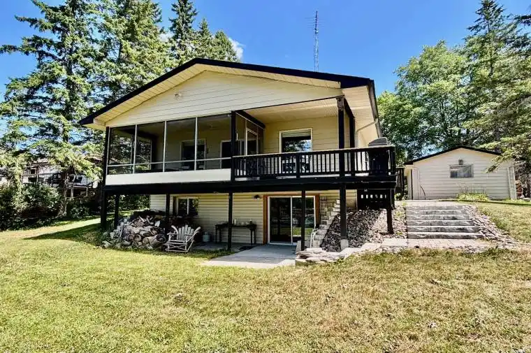 Welcome to your dream waterfront retreat! This beautifully updated year-round home offers 2+2 bedrooms, 2 full bathrooms, and 2 kitchens, perfect for multi-generational living or hosting guests. Nestled at the top of the Pigeon River and the bottom of Pigeon Lake, this property sits on a large, mature, and beautifully manicured lot adorned with majestic American maple trees, offering privacy, shade, and natural beauty in every season. Located on a municipally maintained road with natural gas service and school bus access, enjoy all the comforts of modern living in a tranquil lakeside setting. Inside, enjoy a brand-new custom kitchen on the main floor, opening into a spacious open-concept layout that blends kitchen, dining, and living areas. Step out onto the screened-in porch overlooking the water, perfect for morning coffee or evening sunsets. Recent upgrades include: New shingles, New appliances, Updated electrical and plumbing, Fully renovated bathrooms, New Generac generator for backup power. The property also features a detached garage and an additional storage shed with hydro by the water ideal for tools, equipment, or all your water toys. Whether you’re seeking a year-round residence, a weekend escape, or an investment with in-law suite potential, this property delivers it all. Don’t miss this rare opportunity to own a piece of waterfront paradise surrounded by natural beauty and modern comfort. Steps away from access to boat launch and community park ($25/year fee).