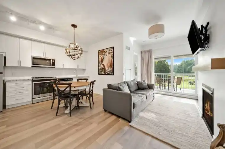 Lovely 1 Bedroom 1 Bathroom Condo with golf course views! Located on the top floor, with no neighbours above, this home features approx 9 foot ceilings, gas fireplace, just under a 100 square foot balcony, S/S Kitchen Appliances and More! This condo is being sold fully furnished & is also eligible for the Resort Rental Program! Steps to skiing, biking, golf, trails and less than 20 mins to Barrie. Make use of some of the hotel amenities from the pool to the exercise room!