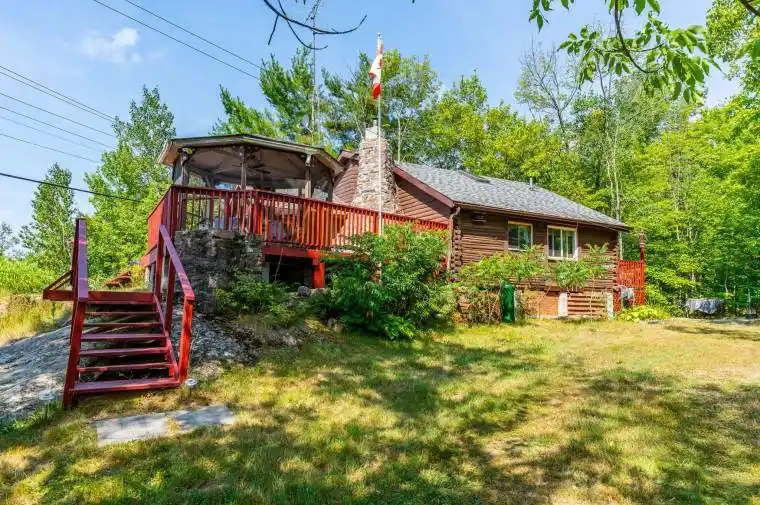 Welcome to your peaceful escape on sought-after Davis Lake! This cozy 2-bedroom log cabin is perched on a stunning rock outcropping with postcard-worthy views of the lake. Tucked away on a private dead-end road with only five other cottages, its the perfect getaway for nature lovers and outdoor enthusiasts. Inside, you’ll find a recently updated 3-piece bathroom, a refreshed galley-style kitchen, and a new breaker electrical panel for peace of mind. The rustic charm of the original build is preserved while offering practical updates like newer windows and a WETT-certified wood stove to keep you warm and cozy year-round. Step outside to enjoy a screened-in gazebo, two large storage sheds (one with a workshop), and even an outdoor privy. Owners on this quiet road enjoy shared access to over 700 acres of pristine conservation land with scenic trails an incredible bonus provided through the Davis Lake Cottage Association and the MNR. There’s also lake access with a small dock just across the road, and a public boat launch just minutes away. Davis Lake is known for its excellent swimming, boating, and fishing, and this special property offers a rare opportunity to own a piece of classic cottage country. Most contents included perfect for someone looking to get into the cottage market!