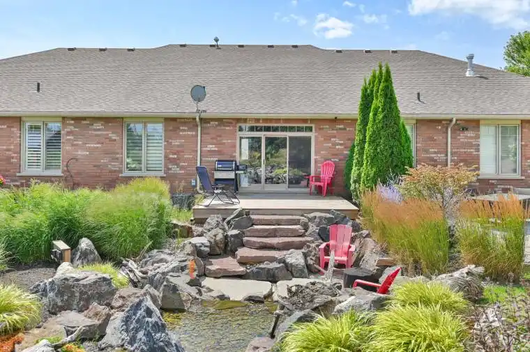 Welcome to this beautifully upgraded bungalow townhouse, offering 2+1 bedrooms and 3 full bathrooms in a thoughtfully designed layout that is perfect for both comfort and functionality. The main floor features soaring cathedral ceilings in the living room and 9 ceilings throughout the rest of the level, creating a bright, open atmosphere.The modern kitchen is a true showstopper with brand new quartz countertops featuring a stylish waterfall edge, a marble and gold backsplash, upgraded light fixtures in the kitchen and dining area, and a Whirlpool smart oven. Enjoy the convenience of main-floor laundry and a low-maintenance backyard oasis, complete with a custom sunken patio and waterfall, designed by Lavish Gardens.The fully finished basement is ideal for extended living or entertaining, featuring a large recreation room, spacious bedroom, and a 3-piece bathroom. Designed with soundproofing in mind, the basement includes Sonopan acoustic panels, Rockwool SafenSound insulation, resilient channel, and fire-rated drywall in the ceiling. Theres even soundproofing under the staircase for added quiet. The space is wired with Cat6 for high-speed connectivity and is roughed in for a future wet bar or kitchenette. Additional updates include a new gas furnace and gas hot water tank installed in winter of 2024, new carpet on stairs, stylish LVP flooring in the basement, updated smoke/CO detectors, and pot lighting throughout.This exceptional property blends high-end finishes with thoughtful construction- truly move-in ready and built to impress!