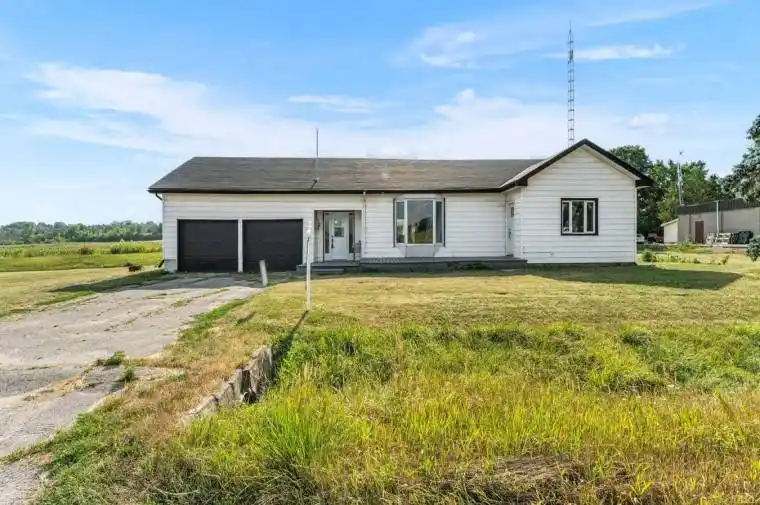 This beautiful detached bungalow is fully renovated with modern finishes. 3 Bedrooms and 2 bathrooms allow comfort and functionality while being situated on a huge irregular lot close to the 401 Highway. The gem has a spacious living room with a large bay window and newer kitchen with quartz countertops, backsplash and new stainless steel appliances overlooking a sunroom with a full glass enclosure that walks out to a lovely huge yard with a serene view. Fresh Laminate flooring and potlights throughout gives the modern and bright touch of a modern finish. Further updates include; New roof (June 2025), New owned HWT (2023), Heat Pump, AC unit (2023), Emptied Septic System/ Maintenance (June 2025), Brand New insulation in Attic (March 2025) Invisible dog fence wiring beneath the ground (Mother board not included), Heat Pump Installed (2023) to offset the propane costs.