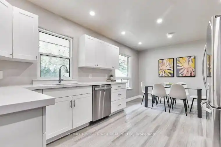 This solid ranch bungalow is extensively remodeled and updated! Spacious, versatile and well-appointed ranch bungalow, ideal for multi-generational living. Located in one of Oshawa’s great neighbourhoods, just 5 minutes from Ontario Tech University and Durham College. Start with the oversize lot, 70′ by 134′ with full fencing in the rear, large backyard terrace, garden shed and exceptional privacy. Attached garage with access from the large mud room and an amazing 9-car driveway. The light-filled main floor features 3 generous bedrooms, oak floors and recently upgraded bathroom with full-size laundry and Jacuzzi tub. A new contemporary kitchen, installed in 2023, boasts quartz counters, luxury vinyl plank flooring, stainless steel fridge, stove & dishwasher; and large double stainless steel sink. The basement is completely finished with separate rear entrance; 3 spacious bedrooms, each with a new oversize window which meets safe egress specifications; fully-equipped kitchen with fridge, stove & dishwasher; pantry room; new/upgraded 3-piece bathroom; rec room; full laundry; and finished storage room. Comfortable living is enhanced by acoustic insulation between levels as well as in the basement bedroom walls. Fire-rated drywall in the basement ceiling. Central vacuum on both levels. Lifetime roof shingles & steel vents installed in 2017. In addition, an EnerGuide energy assessment has assigned an energy rating of 76, which places this home in the top 5% in Canada for energy efficiency. **EXTRAS** 200 amp panel (2010); low-E vinyl windows; high-efficiency tankless water heater; high-efficiency/low-flow toilets; upgraded front porch; high-efficiency Goodman furnace (2011); hard-wired & wireless smoke & CO detectors, interconnected.