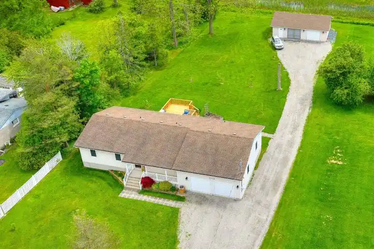 Oversized Bungalow with Heated Workshop, Offering Privacy and All-One-Level Living! Beautifully maintained 4-bed, 2.5-bath custom bungalow (1996) on a peaceful 96 x 265 (0.59-acre) lot with full municipal services. Perfect for car lovers, hobbyists, or anyone seeking one-level living with incredible garage/workshop space. Inside: engineered white oak hardwood in the living room, hallway, and bedrooms; luxury vinyl tile in both main and ensuite baths; new trim, fixtures, hardware, window coverings, and fresh Benjamin Moore paint. Baths feature granite vanities, Moen faucets, and updated lighting. Kitchen includes newer appliances fridge, gas stove (wired for electric), dishwasher, microwave, and washer/dryer. Exterior entry and patio doors replaced in 2023. The full basement offers layout potential for 2 bedrooms, rec room, 2nd kitchen, and roughed-in bath, plus a cold room, owned HWT, new sump pump (2025), and high-efficiency 2-stage furnace. Front garage: 200-amp service, transfer panel (2023) with generator, hot/cold taps, 2024 Wi-Fi garage door opener with battery backup and camera, insulated 8×7 doors, fresh paint (2025). Rear garage/workshop (23×35): monolithic pad, 100-amp service, 2 welding plugs, attic access, LED lighting, pallet wood accent walls, 2 Wi-Fi garage door openers (2024), oversized insulated doors (9′ x7′ 6″), 50 HD TV, workbench, 4 ” underground utility pipe. House and garage heated year-round for approx. $88/month gas. Outdoors: updated 2-tier deck (2025) and back porch (2024), dusk-to-dawn exterior lighting, new tree plantings, improved drainage, and exterior sewage clean out. Negotiable: 2023 Toro Zero Turn mower, 2023 snow blower, patio set. An exceptional property that’s sure to impress.