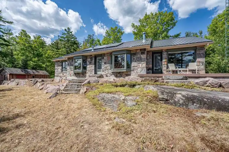 Escape to your own slice of paradise with this 3-bedroom, 1-bath Royal Home cottage nestled on 1.32 acres of pure privacy. Located just outside Buckhorn on beautiful Mountain Lake, this property boasts 261 feet of pristine shoreline and is surrounded by Crown Land ensuring peace, seclusion, and an unspoiled natural backdrop. This off-grid solar-powered haven offers sustainable living without sacrificing comfort. The shoreline features spectacular pink granite landscaping; a rare and valuable natural highlight that perfectly frames the waters edge. The lake itself is a low-motor lake, ideal for quiet paddling, swimming, and world-class fishing. Enjoy the ultimate Canadian cottage lifestyle with incredible fishing, breathtaking views, and endless outdoor adventures right from your doorstep. Whether your seeking a seasonal getaway or a self-sufficient retreat, this property delivers unmatched beauty, privacy, and tranquility. EXTRAS; 2 brand new docks, freshly painted spring 2025, Tower installed for satellite internet, 3 Stone propane fireplaces, steel roof, septic (2004), outbuildings for storage.