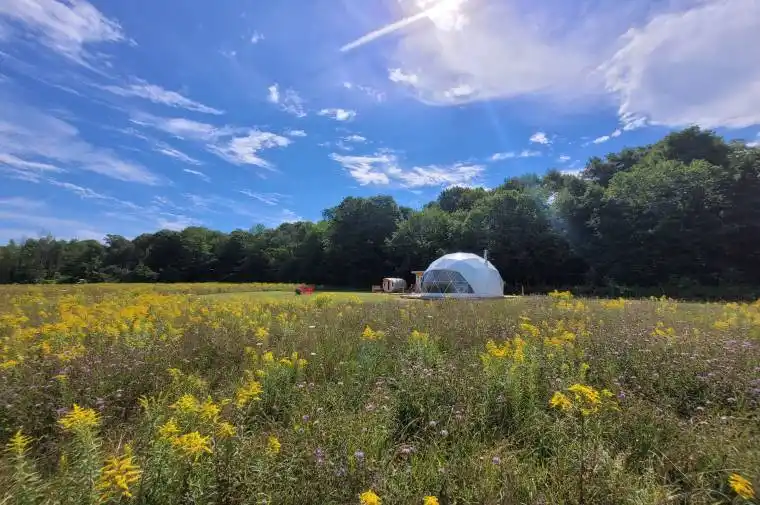 One-of-a-kind 86 acre COMMERCIAL HOSPITALITY RETREAT CENTRE with Existing Use designation on the NIAGARA ESCARPMENT in GREY COUNTY. There is Magic here! Fully Organic. 4 season Tourism draw. Stunning Property offers confirmed and vetted COMMERCIAL PERMISSIONS: Hosting Group Retreats ; Short-term Accommodations; Events: Weddings, Workshops, Classes, Celebrations; Camps; Retreats; On-site sales; Recreational, Fitness + Educational Experiences. FACILITIES: Spacious Farmhouse Retreat LODGE 3300 ft ready for your inspiration – full interior repaint (2024); New well, pump, and pressure tank (2024). BANK BARN 4675 ft on each of 2 floors, Lofted Upper Floor with Hand Hewn Beams. Off Grid Geodesic DOME CAMP / Social Spa. Orchard Event Space, 7km professional Trail System THE LAND: Views Views Views, Abundant Exposed Escarpment Rock & Soaring Forests. 3 sparkling clear mineral rich Spring-fed Ponds, multiple stunning lookouts over Big Head Valley. Bruce Trail adjacent and potential future section host. 54 meters of rise from the lowest to the highest point. AGRICULTURE: 10 acres of productive Organic Heritage Apple Orchards (over 25,000 lbs harvested 2022) , 2 acres of Vineyard atop the Ridge, Land Management / Equipment Package. Rare opportunity to create your Vision.