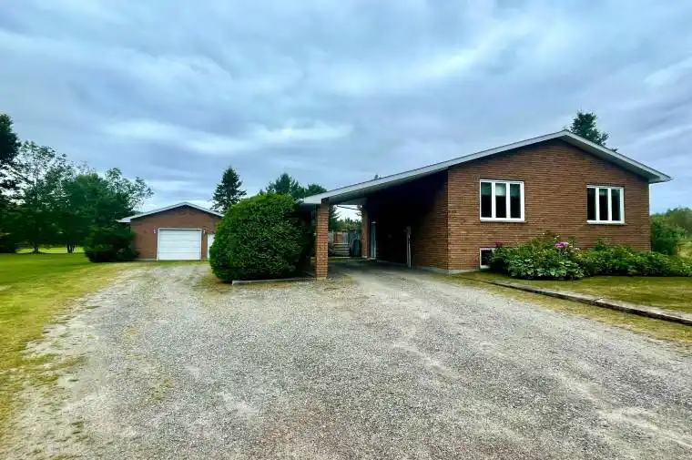 Welcome to this beautifully maintained all-brick bungalow offering 2+2 bedrooms and 1+1 bathrooms, complete with a fully finished basement. Pride of ownership is evident throughout, providing plenty of room for a growing family. Set on a quiet road at the edge of town, this property offers the perfect blend of privacy, space, and convenience, with just under two acres of land that captures the feeling of country living while being moments from town.Inside, the home features an open-concept kitchen, dining, and living area filled with natural light and warmth, with hardwood floors running throughout the main level, and a gas fireplace found on both levels. The large, spacious bedrooms and closets (closet systems), and generously sized bathrooms – not to mention a show stopper bathtub, makes this home ideal for families. With patio doors leading out to a large back deck, you’ll find it perfect for outdoor entertaining and enjoying the private surroundings. The lower level is fully finished, offering additional living space, guest rooms, or recreation areas along with a convenient extra bathroom.Recent updates include a renovated main floor bathroom (2023), ventilation in the house and newly shingled roof on both house and garage in 2022. The detached two-car garage is insulated, equipped with a propane heater, and is finished with a poured concrete floor, making it an excellent workspace or storage option. Additional features include an invisible fence for pets and a septic system maintained/pumped every two years.This property combines the best of both worlds: the peace and privacy of country living with the convenience of being on the town boundary. Spacious, updated, and move-in ready, this charming home is perfectly suited for families looking to settle into a move-in-ready home with room to grow.This home truly has it all space, updates, and a desirable location.