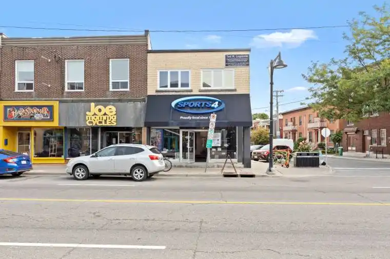 Located on the northeast corner of Bank Street and Second Avenue, this two-storey multi-tenant building offers excellent visibility in one of Ottawa’s most vibrant neighbourhoods. The property features 4,242 SF of mixed-use space combining retail and office units, plus an additional 800 SF of partially finished basement space. Situated on a 2,077 SF site, the property is zoned TM H(15), allowing for a variety of commercial and residential uses.