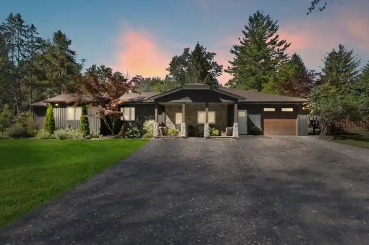 Stunning treed setting across from the lake! This beautifully updated 4-bedroom, 1.5-bathroom bungalow sits on a sprawling 0.86-acre lot just minutes from Port Colborne. The spacious kitchen with island opens to a bright dining room with an adjacent office nookperfect for todays lifestyle. The inviting living room features in-floor heating and patio doors leading to the expansive backyard. The primary bedroom offers sliding doors that open to a large deck, creating a seamless connection to nature and an ideal spot for morning coffee or evening relaxation. A one-car attached garage is complemented by an insulated workshop with in-floor heat and hydro ideal for hobbyists or additional storage. The park-like rear yard provides endless space for entertaining, gardening, or simply unwinding in your private outdoor retreat. A charming bunkie in the backyard adds even more versatility great for guests, a studio, or a quiet escape.Recent updates offer peace of mind, including siding (2022), garage door with opener (2022), most windows (2022), A/C units (2021/2023), gas fireplace (2019), new water heater (2023), and new well pump (2023).With a blend of modern upgrades and natural surroundings, this property offers the perfect balance of comfort and tranquility.