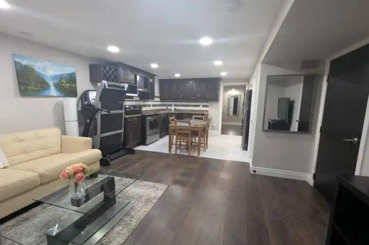 Beautifully renovated and furnished basement apartment with a separate entrance, situated in the highly sought-after John Fraser and St. Aloysius Gonzaga Secondary School district. This spacious unit features two generously sized bedrooms, a modern full bathroom with heated towel rack and premium shower head, an open-concept kitchen with SS appliances. The inviting living room is combined with the kitchen. Enjoy the convenience of your own in-suite laundry and one parking space on the driveway. Conveniently located near shopping centers, grocery stores, parks, close to Elementary & Middle schools, and public transit, with easy access to Highways403 and 401 and close to all essential amenities. Tenants pay 30% of the utility, Internet is included.