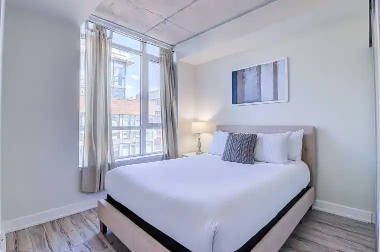 Modern 1-bedroom furnished condo at the Carnaby Lofts in Queen West featuring floor-to-ceiling windows, a sleek kitchen with built-in appliances, in-suite laundry, and a private balcony. Enjoy top amenities including a fitness centre and rooftop terrace,, all while being steps from Metro grocery, LCBO, cafés, restaurants, TTC, and the vibrant shops of Queen Street West.
