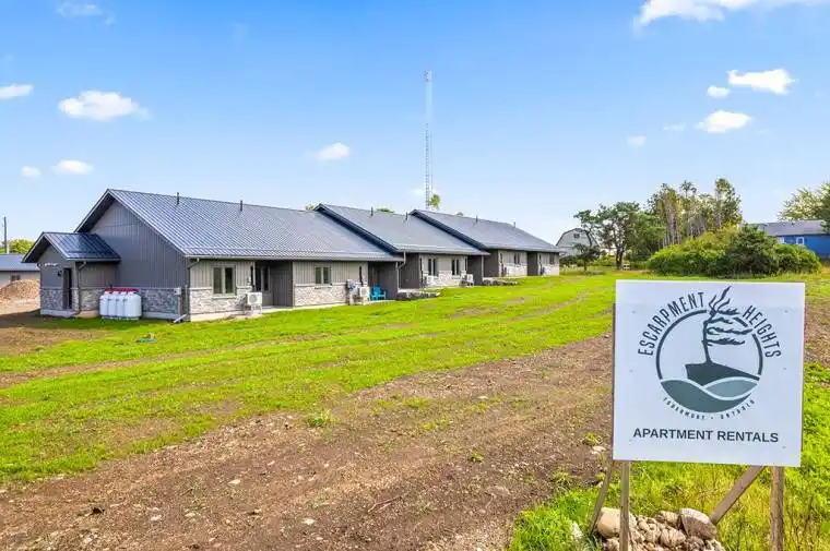 **END UNIT** Welcome to Escarpment Heights, a thoughtfully designed retirement rental community offering the perfect blend of comfort, convenience, and peace of mind. These townhome-style apartments are an excellent option whether you’re looking to enjoy year-round living in Tobermory or spend summers here and head south for the winter, knowing your property will be cared for with lawn maintenance and snow removal included. Each unit has been built with quality in mind, featuring open and spacious layouts, paved driveways, covered entrances, and private outdoor spaces. Deluxe units offer the added bonus of a single-car garage and den. Every home is equipped with in-floor heating, air conditioning, and 36″ door widths for accessibility, along with a full suite of stainless steel appliances including fridge, stove, dishwasher, microwave, washer, and dryer. The Standard One-Bedroom unit provides 720 square feet of well-planned living space. It includes a large master bedroom with generous closet space and an open-concept kitchen, dining, and living area highlighted by a built-in pantry. The rental rate is $1,875 per month plus hydro, with in-floor heating, water, property taxes, lawn care, guest parking, and snow removal all included. Escarpment Heights is more than just a place to live – its a lifestyle. Set in the heart of Tobermory, its the perfect choice for those seeking a secure, low-maintenance retirement home surrounded by the natural beauty of the Bruce Peninsula. With Phase 1 now complete and Phase 2 coming soon, this is the ideal time to reserve your unit and secure your place in this sought-after community. Contact me today to arrange a viewing or learn more about availability at Escarpment Heights.