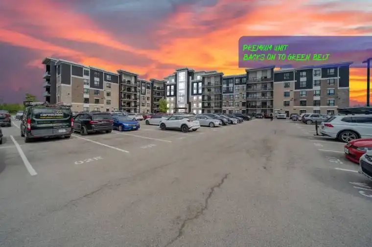 Discover this inviting one-bedroom apartment featuring a bright family room with a walk-out to a private balcony, where a premium was paid for its beautiful and serene view of the green belt and pond the perfect setting for morning coffee or evening relaxation. The open-concept floor plan offers seamless flow, while the clean and spacious kitchen provides plenty of room to cook and entertain. Set in a serene neighborhood, this home presents an amazing opportunity for first-time buyers, downsizers, or investors seeking a well-maintained space in a desirable location. Building amenities include bike storage, a party/meeting room, a rooftop deck/garden, and visitor parking. Move-in ready and thoughtfully designed, this apartment blends comfort, convenience, and community living all in one. The unit is currently tenanted until the end of October 2025 and will be delivered vacant upon closing.