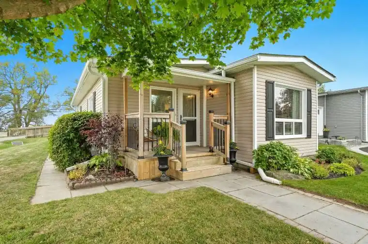 Discover lakeside living at its finest in this beautifully updated, carpet-free 2-bedroom, 2-bathroom bungalow nestled in the heart of Wilmot Creek one of Clarington’s most sought-after adult lifestyle communities. Perfectly positioned just steps from the Wheelhouse Community Centre and backing onto serene views of Lake Ontario, this home offers the perfect blend of comfort, convenience, and natural beauty. Step inside to a bright, open-concept design featuring a spacious kitchen with updated cabinetry and a sunlit dining area ideal for casual meals or hosting friends. The generous living room flows seamlessly to a private back deck, where you can unwind with your morning coffee while watching the sunrise over the water, or entertain guests with the lake as your backdrop. The primary bedroom offers a peaceful retreat with a walk-in closet and a private ensuite bath, while the second bedroom and full guest bathroom provide comfort for visiting family and friends. Enjoy year-round activities and amenities including indoor resistance pool, Hot Tub, Sauna and outdoor pools, fitness facilities, 9 Hole Golf Course, Tennis, Pickleball, and an active social calendar all just steps from your door. Monthly land lease: $1,200 + property taxes, with snow removal and water included for a truly low-maintenance lifestyle. Recent updates: Vinyl siding (2017), shingles (2017), kitchen (2017), deck (2017), eavestroughs (2025), Furnace (2021) Replaced Blower (2024), Heat Pump Installed 2024. If you’ve been searching for a move-in ready home with breathtaking lake views in a vibrant and welcoming community, this is the one.