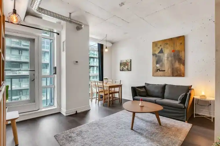 True Loft Living at Westside Gallery Lofts in Prime Queen West! Where Little Portugal meets Liberty Village, this stylish condo puts you in the middle of Toronto’s most dynamic west-end neighbourhoods. Just steps to local landmarks like The Drake Hotel, The Gladstone, Trinity Bellwoods Park, plus endless cafes, galleries, boutiques, and nightlife. Transit, the GO Train, and major routes are all close by, making commuting simple. Inside, enjoy soaring 9+ ft exposed concrete ceilings, an open-concept living/dining space with a walkout to your balcony, and a large bedroom retreat. The modern kitchen features stainless steel appliances and granite counters.Building amenities include a fully equipped gym, meeting room, guest suites, and visitor parking.