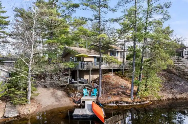 Welcome to your lakeside sanctuary. This extraordinary retreat blends the warmth of a fully furnished cottage with the breezy charm of a beach house. The main cottage offers 3 inviting bedrooms and 1 bath, while a picturesque 1.5-storey bunkie with its own deck and breathtaking water views adds a storybook touch. Designed for connection and celebration, the property features multiple decks, generous entertaining spaces, and even a waterfront bar perfect for sunset cocktails. With two separate waterfronts, each with its own dock, you’ll have front-row seats to both sunrise and sunset. A sandy beach invites you to swim, paddleboard, canoe, or cast a line, while a fire pit perched on Canadian Shieldrock offers the perfect setting for evenings under the stars. Every detail here speaks to lakeside elegance and exclusivity. Whether you’re searching for a family cottage or a smart rental investment, this rare gem delivers it all just 10 minutes from Kawarthas iconic winery.