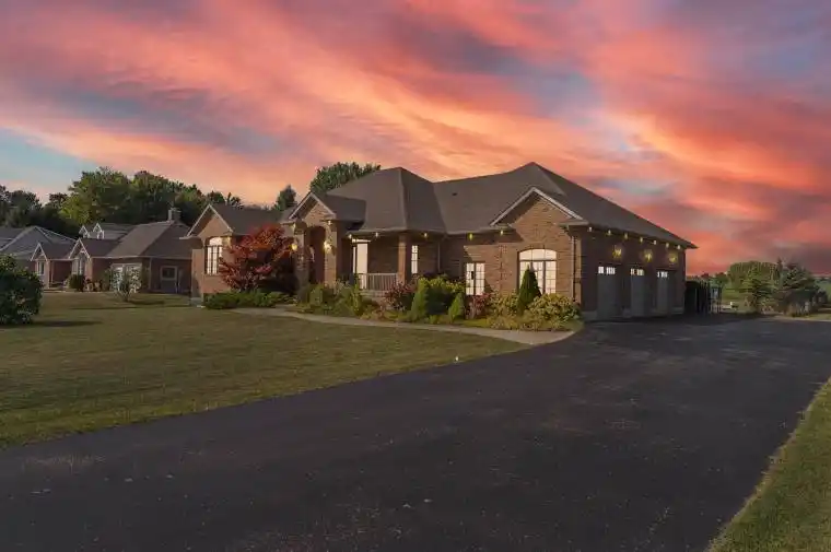 Stunning Custom Bungalow by Surducan Custom Homes!!! Set on a beautifully landscaped 100 ft 277 ft (0.6 acre) lot with a full sprinkler system, this exceptional property offers over 4,500 sq ft of finished living space and is just 10 minutes to St. Jacobs and 15 minutes to Waterloo. Main Level: 2,285 sq ft of elegant, open-concept living Builder-Finished Basement: 2,215 sq ft with large sunshine windows. Outdoor Oasis: Beautiful in-ground pool and landscaped backyard perfect for summer entertaining. Oversized triple garage ideal for vehicles, storage, or a workshop. 5 spacious bedrooms, 3 full bathrooms, plus a main-level powder room, Spa-like 5-piece en-suite featuring a relaxing deep tub, glass shower, and dual vanities. Carpet-free with hand-scraped engineered hardwood and tile floors on the main level. Grand foyer, superior European construction, and quality architectural details throughout This meticulously maintained bungalow blends timeless design, luxurious finishes, and modern comfort complete with a private in-ground pool just minutes from city conveniences.