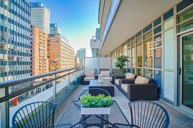 Rare 323 sq ft private terrace with natural gas BBQ hookup, water hose, and drain sets this freshly updated 2-bedroom, 2-bathroom condo apart at the Madison in Midtown Toronto. This bright, open-concept unit features brand new luxury vinyl flooring (late 2024), fresh paint throughout, updated light fixtures, floor-to-ceiling windows, and that spectacular terrace that truly extends your living space. The terrace is larger than most in the building and perfect for everything from morning coffee to evening entertaining. The spacious primary bedroom easily accommodates a king bed and includes an ensuite with a walk-in glass shower. The second full bathroom includes a tub. The flexible second bedroom features a premium built-in desk/Murphy bed unit (queen-sized), creating the perfect home office that converts seamlessly for guests. Stainless steel appliances complete the kitchen, and the convenient in-suite laundry with washer/dryer and storage make daily life effortless. Parking and locker included, plus the unique convenience of same-floor access to all building amenities. The Madison puts everything at your doorstep: Loblaws and LCBO in the building’s base, steps to the subway and nearly-complete Crosstown LRT, and the shops, dining, and entertainment of Yonge & Eglinton. The pet-friendly building is Beanfield Fiber-ready for lightning-fast, affordable internet. Resort-style amenities include 24/7 concierge, fitness centre, yoga studio, indoor pool, hot tub, steam room, rooftop terrace with BBQs, theatre room, and more. Perfect for professionals who value walkability and connection, or anyone seeking convenience in Midtown’s most dynamic neighbourhood.