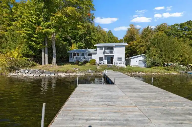 Welcome to Patterson Lake! This spacious, family-oriented home features three bedrooms and 1.5 bathrooms, all designed for comfort and relaxation. At heart of the home is a beautiful bright kitchen with a large island that seats six, ideal for casual breakfasts or large family gatherings. Off the kitchen, a sun-filled dining room opens onto a large deck overlooking the lake, creating a seamless indoor outdoor experience. The cozy living room, complete with a woodburning fireplace, invites you to unwind. Upstairs, the primary bedroom offers a private balcony with stunning lake views, your personal retreat for morning coffee. The bathroom includes a luxurious soaker tub, with a spa like feel. Outside, the property is equally impressive. A screened front porch provides a bug-free space to enjoy summer evenings, while the expansive deck is perfect for entertaining or simply soaking in the peaceful surroundings. A private dock awaits your boat or kayaks, and the fire pit is ready for your marshmallow roasting memories. There is even a garage for extra storage. The kids will love the massive tree fort and the endless opportunities to explore the outdoors. Whether you’re looking for a year-round residence or a seasonal escape, this home offers the perfect blend of comfort, adventure, and serenity!