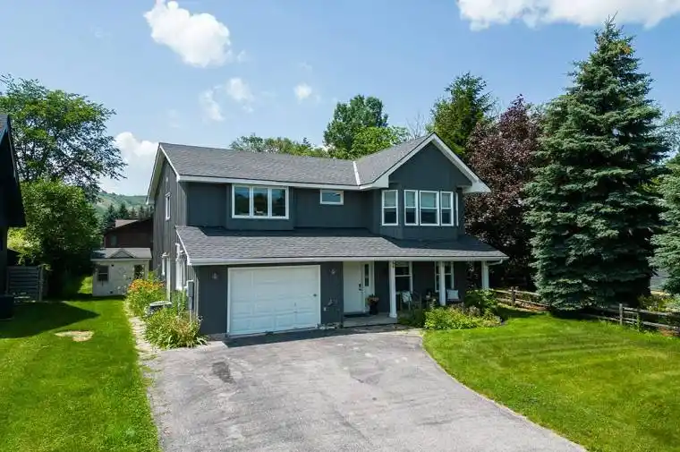 Walk to Blue Mountain Village! This bright and inviting 4-bedroom, 3-bathroom home is tucked away on a quiet cul-de-sac, just steps from Blue Mountain Village and only minutes to beaches, ski clubs, golf, and trails, perfect for year-round living and recreation. Designed with a reverse floor plan to capture the best mountain views, this home offers space, comfort, and convenience for today’s active lifestyle. The main level features a spacious recreation room with a cozy gas fireplace, two bedrooms, a full 4-piece bath, and a laundry room with a walkout to the backyard and patio, ideal for indoor-outdoor living in every season. Upstairs, the open-concept kitchen, dining, and living area is filled with natural light and mountain views. The kitchen boasts granite countertops, a large open pantry, and direct access to the upper deck for effortless BBQs and dining al fresco while enjoying sunsets over the slopes. The living room’s abundance of windows creates a warm and welcoming gathering space. The upper level also hosts the primary suite with a sleek, renovated 3-piece ensuite, plus a fourth bedroom and an additional 4-piece bathroom. Outdoor enthusiasts will appreciate the proximity to hiking, cycling, tennis, and golf, along with the nearby beaches of Georgian Bay. Just 10 minutes to Collingwood, 15 to Thornbury, or a short stroll to Blue Mountain Village for dining, shopping, and entertainment, this property offers the perfect blend of lifestyle and location.
