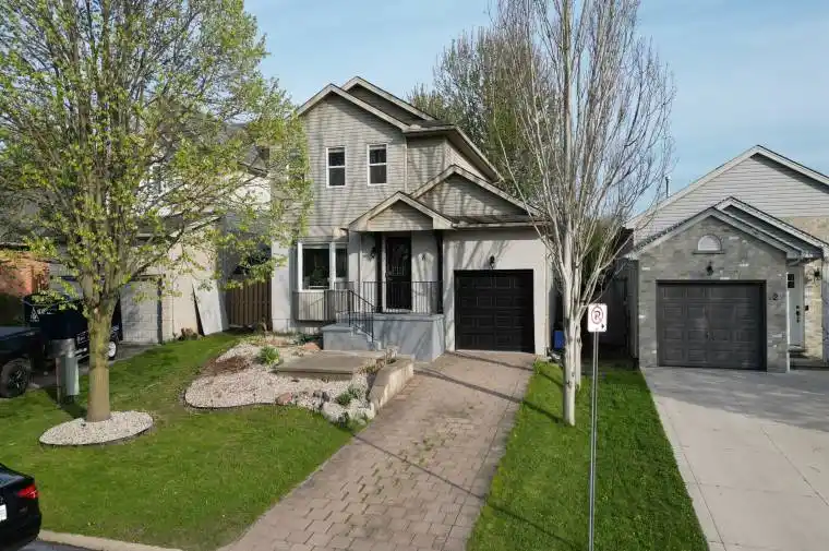 Welcome to this beautifully maintained former model home nestled in the sought-after Pond Mills neighbourhood. Backing onto Naomi Almeida Park, this brick 2-storey residence offers the perfect blend of comfort, convenience, and character ideal for first-time buyers or young families. Step onto a poured concrete front entry with elegant wrought iron railing, leading you into an inviting open-concept living and dining area, perfect for both relaxed family living and seamless entertaining. The main floor powder room adds functionality and guest convenience. The sun-filled kitchen boasts a south-facing window, classic white cabinetry, a breakfast bar for three, and a cozy eat-in area with sliding patio doors that open to a private, fully fenced backyard. Enjoy outdoor living with a stone patio, electric retractable awning, spacious dining deck, and a gazebo complete with a metal dining set and BBQ included! Upstairs, you’ll find three generously sized bedrooms, including a primary suite with a walk-in closet, ceiling fan, and ample space for a king-sized bed. A 4-piece main bathroom and second walk-in closet offer additional comfort and storage. The newly finished basement features a full bathroom, a spacious rec room perfect for family leisure time, a laundry area, and ample storage throughout. Beautiful landscaping enhances curb appeal, while the location offers walking distance to schools, day care, shopping, and easy access to Highway 401perfect for commuters. This turn-key home is ready to welcome its next chapter. Dont miss your chance to own in one of Londons most family-friendly communities!