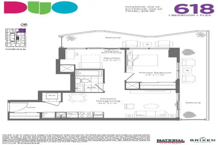 1 Bed + Flex with a great Layout in the Brand New Duo Condos. 620 sq ft 1 Bed +Flex with a stunning 258 sq ft wrap around Balcony, 9′ ceiling, wide plank HP Laminate Floors, Designer Cabinetry, Quartz Counters, Backsplash, Stainless Steel Appliances. Amazing Amenities ready for immediate Use. Rooftop Patio with Dining, BBQ, Garden, Recreation & Sun Cabanas. Party Room with Chefs Kitchen, Social Lounge and Dining.Fitness Centre, Yoga, Kid’s Play Room, Co-Work Hub, Meeting Room. Be in one the best neighbourhoods in Brampton, steps away from the Gateway Terminal and the Future Home of the LRT. Steps to Sheridan College, close to Major Hwys, Parks, Golf and Shopping.