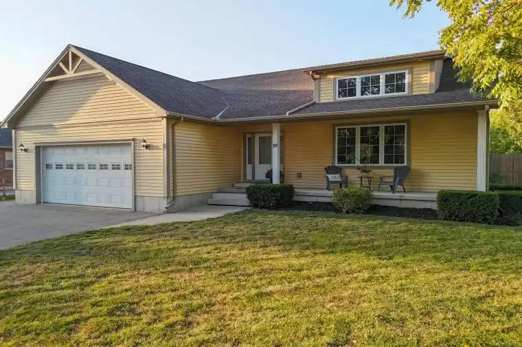 This beautiful home, situated on a beautifully treed corner lot with impressive curb appeal, offers a perfect balance of comfort, style, and convenience in the desirable community of Vienna, Ontario. Just minutes from the pristine Port Burwell Sandy Beach, Lake Erie, a marina, and local campgrounds, this property provides an idyllic setting for outdoor enthusiasts. Inside, the open-concept main floor features soaring cathedral ceilings, a spacious family room with a natural gas fireplace, and a well-appointed kitchen with oak cabinetry, stainless steel appliances, and a central island, ideal for both cooking and entertaining. The master bedroom is a serene retreat, complete with a 4-piece ensuite and walk-in closet, while two additional bedrooms share a 4-piece bathroom. The mostly finished basement offers endless potential with four large windows, a 4-piece bathroom, and a fruit cellar, perfect for extra storage or a future recreation area. Outside, the fully fenced backyard, covered back porch, and heated 2-car garage with automatic opener provide both functionality and comfort. Additional features include a 200-amp electrical service, natural gas furnace, air conditioning, and a sump pump, ensuring year-round comfort. Life in Vienna combines the charm of a small community with easy access to scenic beaches and recreational opportunities, making this home a perfect choice for those seeking a peaceful and active lifestyle.